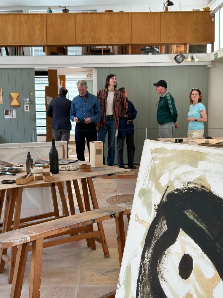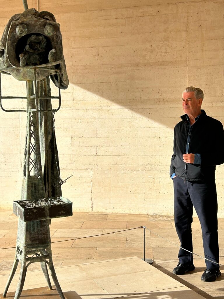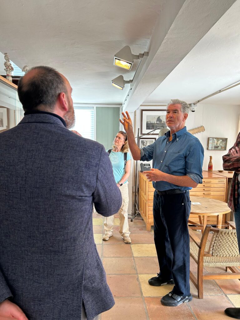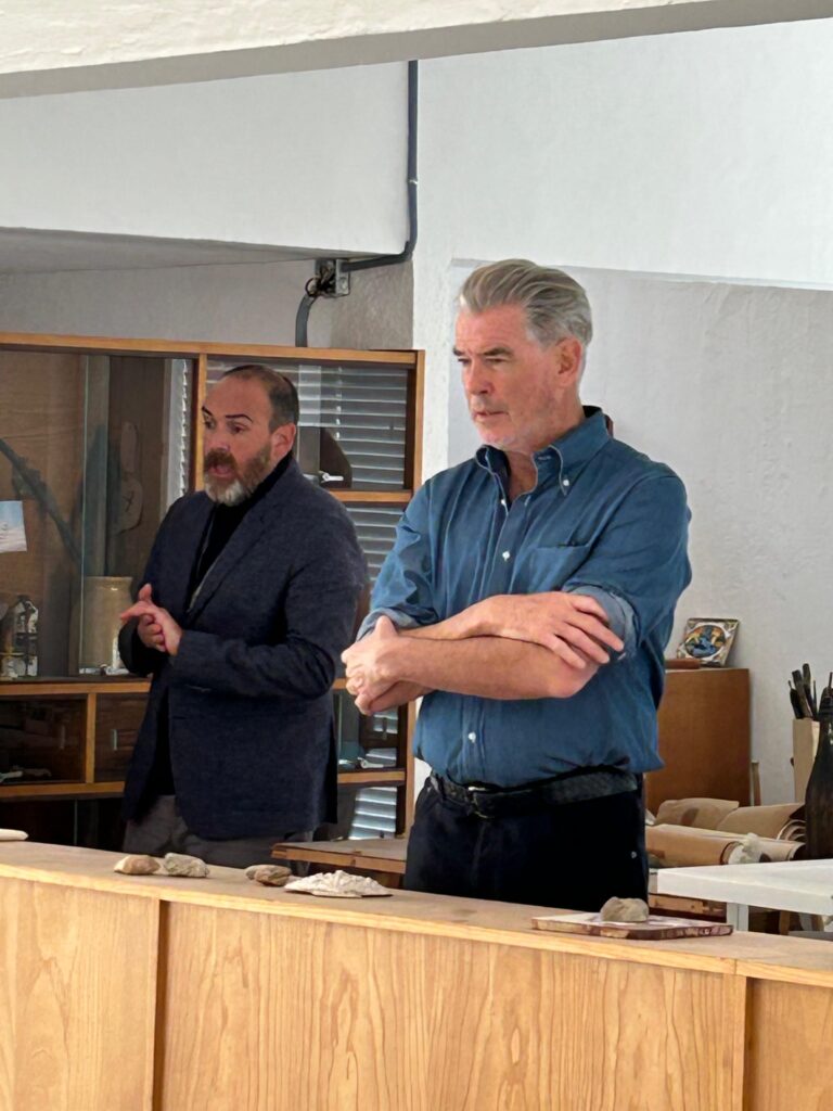 Today, the Fundació Miró Mallorca welcomed a visit from actors Pierce Brosnan and Helen Mirren, who are currently on the island for the filming of an international audiovisual production. During their day off, they wished to discover firsthand the place where Joan Miró lived and worked for nearly thirty years, as well as to gain deeper insight into his work, creative process, and the artistic legacy preserved and shared by the Foundation.