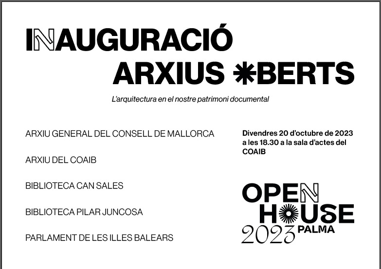 "Arxius Oberts" és una iniciativa que forma part de la programació del festival d’Arquitectura Open House Palma, que pretén mostrar al públic general que l’arquitectura, l’urbanisme i el disseny també són presents al nostre patrimoni bibliogràfic i documental.
