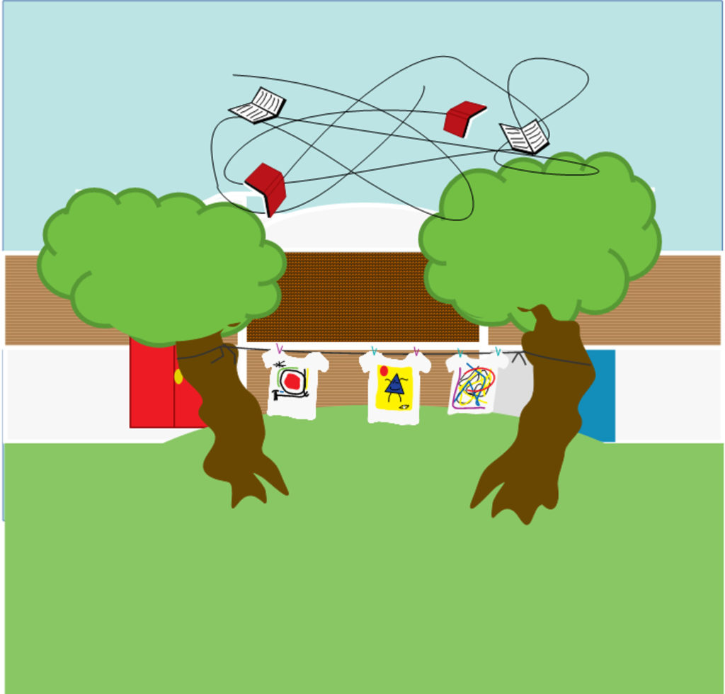 Tot seguit va relatar-se una breu història que connectava la figura de Joan Miró amb la natura i la diversitat de cultures. Vàrem explicar com, l’artista, somiava que es convertia en un ocell i això li permet fer la volta al món. Primer visitava la gran ciutat de Nova York, que resultava una experiència molt enriquidora i diferent de la seva vida a Mallorca. A continuació volava fins al Japó per a aprendre la meditació i el traç japonès, tan visible a l’escriptura. Més tard, viatjava cap a Àfrica, on s’enamorava dels colors de la roba i la natura que hi va trobar, a més d’aprofitar per a menjar molt de dolç. Finalment decideix tornar a casa rodejant tot el Mediterrani, de forma que va adonar-se que tots els pobles que comparteixen el Mediterrani tenen en comú molts aspectes com la natura, els colors o la cultura. Descobrí així la importància de tenir cura dels espais comuns.