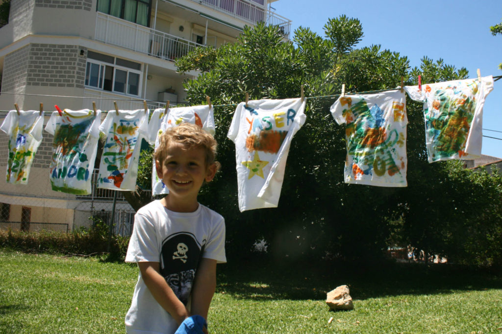 Per això, es va proporcionar als i les menors uns plats perquè poguessin incorporar el que trobaven. Quan ja tenien els plats ben plens, ens vàrem dirigir a l’espai educatiu. En entrar, se’ls va explicar com col·locar les camisetes perque no traspassàs la pintura. I amb els objectes recollits se’ls va suggerir que primer pensassin allò què volien pintar.