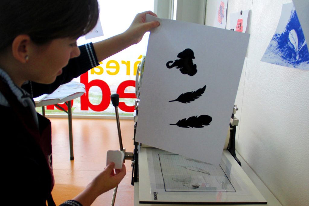 Finalment, ens hem dirigit cap a l’espai educatiu on ens hem arromangat, experimentat i creat les nostres pròpies obres a partir de l’ús de diferents tècniques de gravat, serigrafia i estampació.