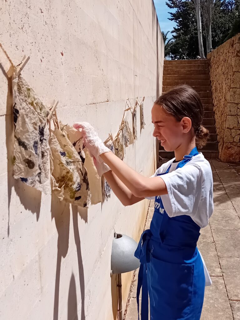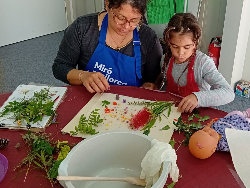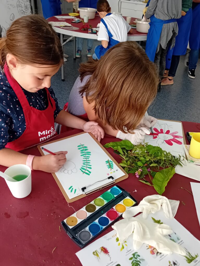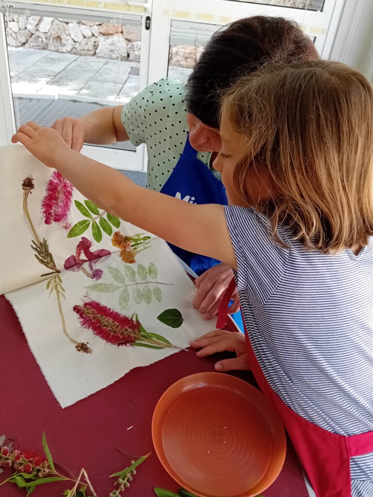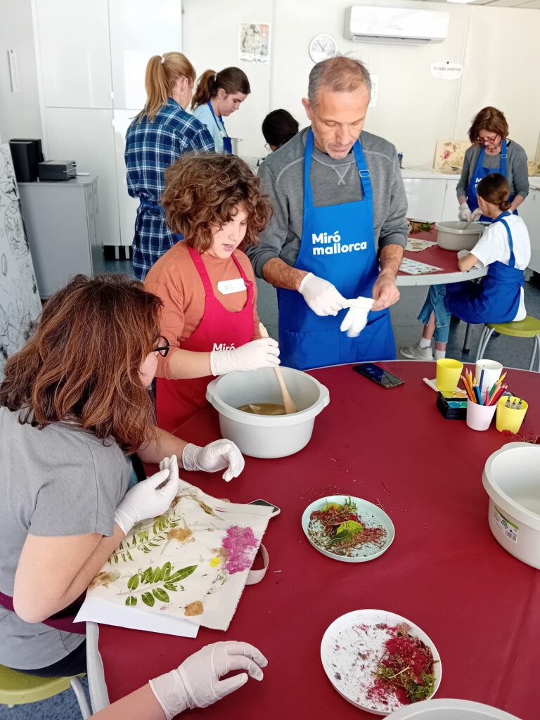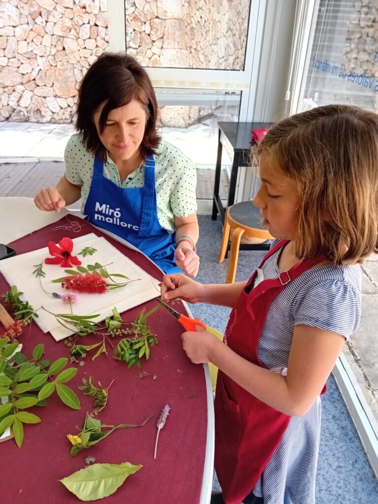 El pasado 20 de abril iniciamos las sesiones del taller familiar “Tintàrium”, dirigidas a familias con niñas y niños de entre 7 y 12 años. Es un taller diseñado y ejecutado por Irene Gayà y Antònia Huguet, integrantes del equipo educativo de la Fundació Miró Mallorca; tiene como punto de partida la naturaleza que rodea el museo, la obra gráfica producida por el artista Joan Miró y la estampación botánica.