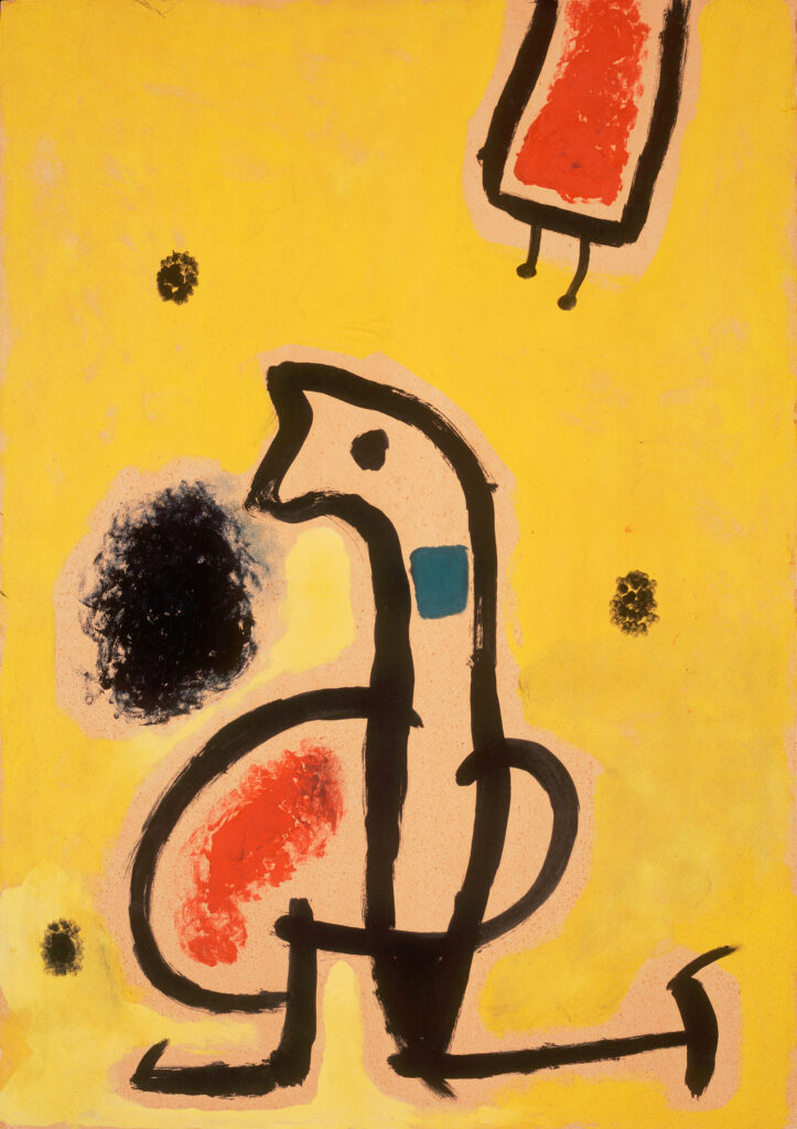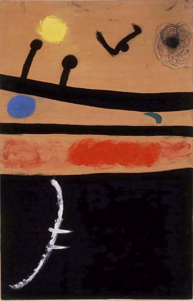 A la coneguda intenció de Miró d’anar més enllà de la pintura, de relegar el virtuosisme tècnic en favor d’una profunda realitat poètica, se li suma la voluntat d’experimentació amb tot tipus de mitjans i tècniques. L’aspecte material de la seva obra, l’elecció del suport físic i l’instrument, contribueix de manera decisiva tant al xoc inicial com al resultat final i el seu efecte sobre l’espectador. El mateix Miró parla de com aquest primer gest el situa en un cert estat d’ànim, imprescindible per a afrontar la feina.