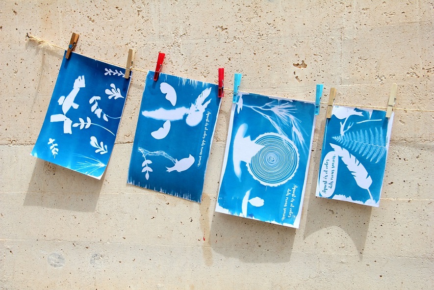 Un cop hem tingut el cap ben ple d’idees, ens hem dirigit tots plegats al nostre taller educatiu on, mitjançant la tècnica de la cianotípia, hem descobert la meravellosa màgia que amaga el color blau cian i hem donat vida als notres personatges!