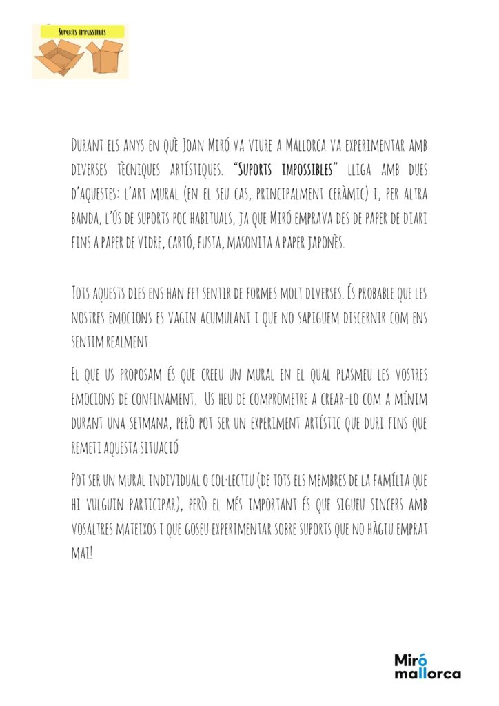 En aquest nou #Miróenfamília 10 us presentam una proposta que conjuga elements molt particulars: educació emocional + art mural + suports impossibles. Tot un repte! Us hi apuntau?