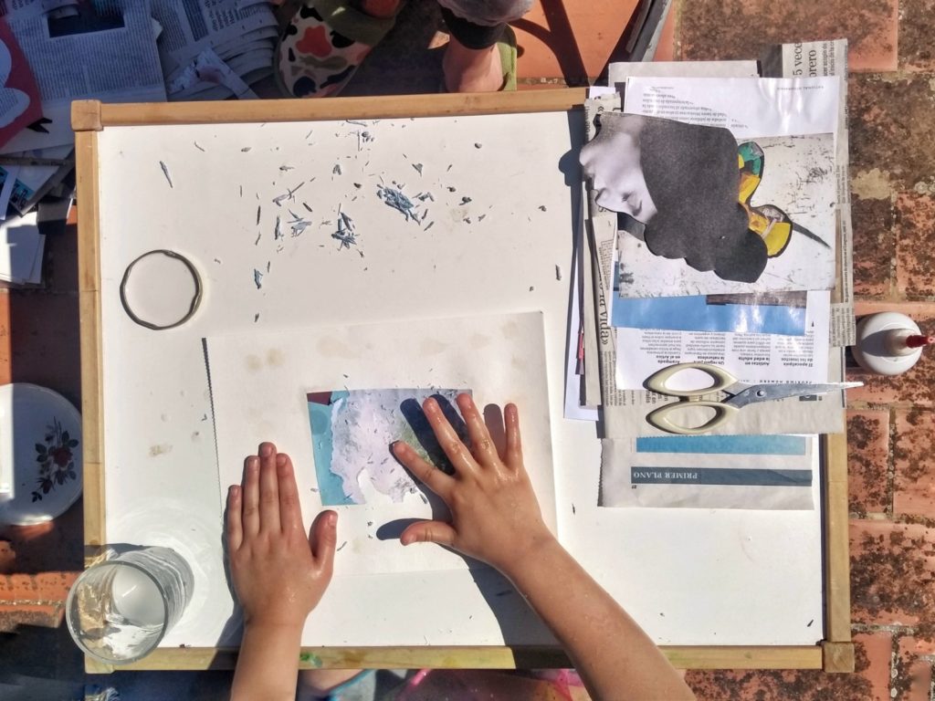 “Teniu papers, revistes, diaris, fotos o dibuixos i no sabeu què podeu fer amb ells? Vos propòs emprar la creativitat i reaprofitar-ho a través d’una tècnica anomenada transfer. És molt senzilla i pot ser explorada tant per infants com adults!“