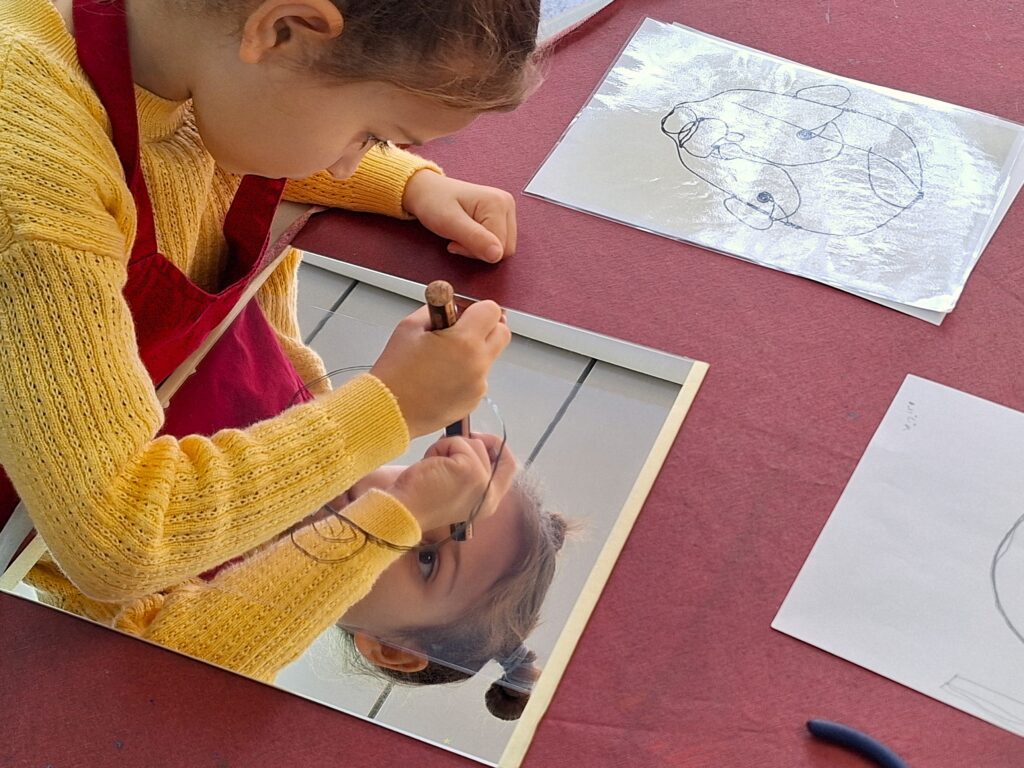 Activitat, carbonet, Educació, EducaMiró, Espai educatiu, experimentar, Exposicions, famílies, infants, Joan Miró, Son Boter, taller, Tallers d'Obra Gràfica, visita