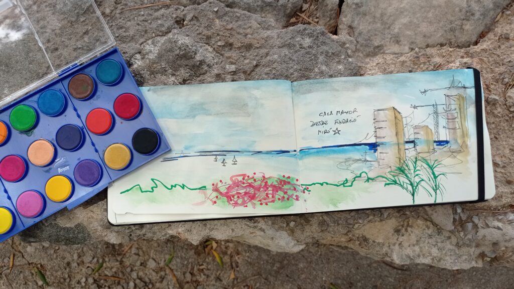 El passat 4 de juny realitzàrem el “Taller d’iniciació a l’Urban Sketching”, dirigit al públic adult interessat en el dibuix. És un taller dissenyat i conduït per Irene Gayà i Antònia Huguet, integrants de l’equip educatiu de la Fundació Miró Mallorca, i té com a punt de partida el dibuix in situ des de l’observació directa de l’entorn del museu i l’espai urbà que l’envolta.