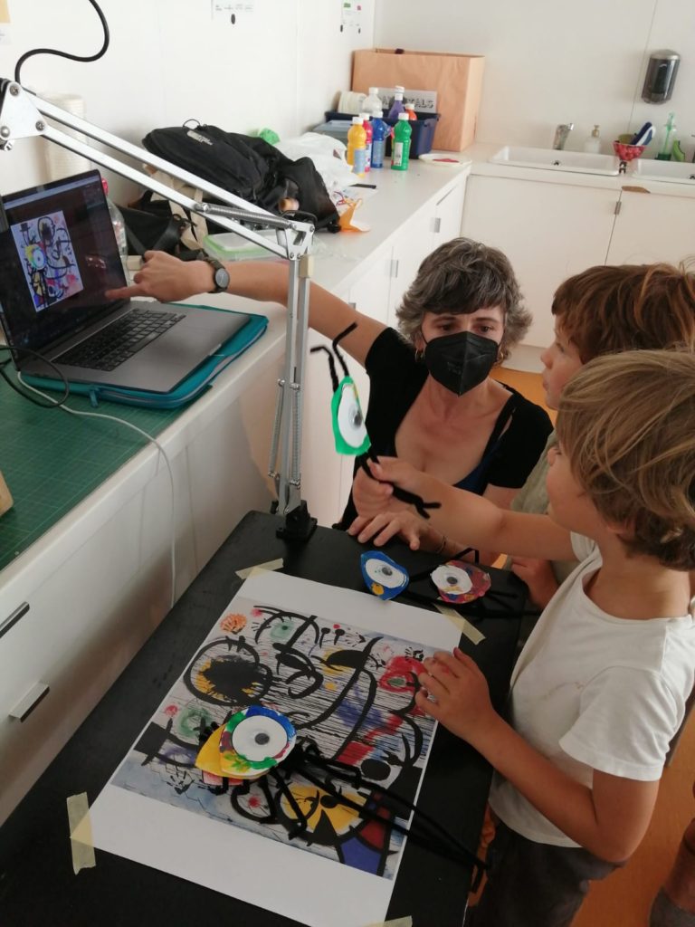A continuació, s’han realitzat dos tallers d’stop-motion en què els infants han imaginat, creat i donat color als personatges de la sèrie i per acabar, emprant la tècnica d’animació d’stop-motion, els seus dibuixos s’han introduit en un dels quadres de Joan Miró, tot cobrant vida! Els participants han comptat amb l’assitència de Mikel Mas, director i productor de la sèrie Mironins, i de la premiada animadora, Irene Iborra.