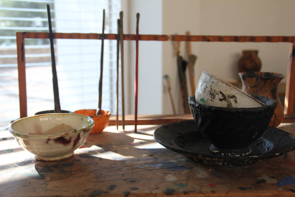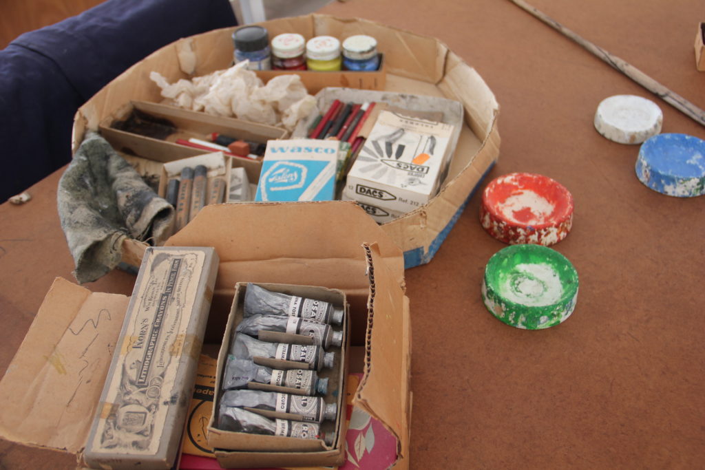 Aprofitant el moment en què el taller estava buit, s’ha realitzat un projecte de fotografiat, mapejat i inventariat de totes les rajoles i taques del paviment, tant a l’espai principal del pis inferior com a l’altell i balcó. Aquesta documentació gràfica permetrà desenvolupar un futur projecte de catalogació que consistirà en analitzar cada rajola amb l’objectiu d’identificar les taques de pintura i associar-les a obres concretes.