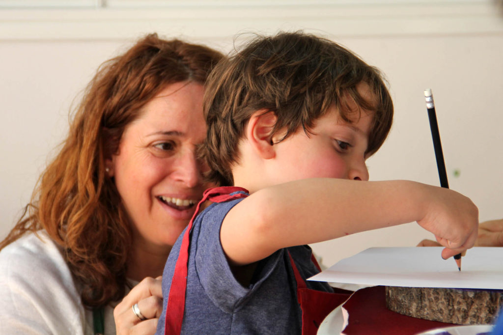 Avui hem descobert que una de les coses que més li agradava fer a Miró des de ben petit era observar el cel de nit amb un telescopi gegant que li havia regalat el seu pare. De fet, ens han explicat que un vespre es va adonar que el cel estava ple de puntets brillants i va pensar que aquests s’assemblaven molt a les pedretes que solia trobar en el bosc! Per això va decidir fer un llibre sobre pedres amb poders extraordinaris que de vegades es transformaven en estels fugaços per viatjar per tot l’univers! També hem parlat sobre com a l’artista li encantava experimentar i com, per aquest motiu, utilitzava sovint un mètode que li permetia crear múltiples universos plens dels seus colors preferits: el monotip.