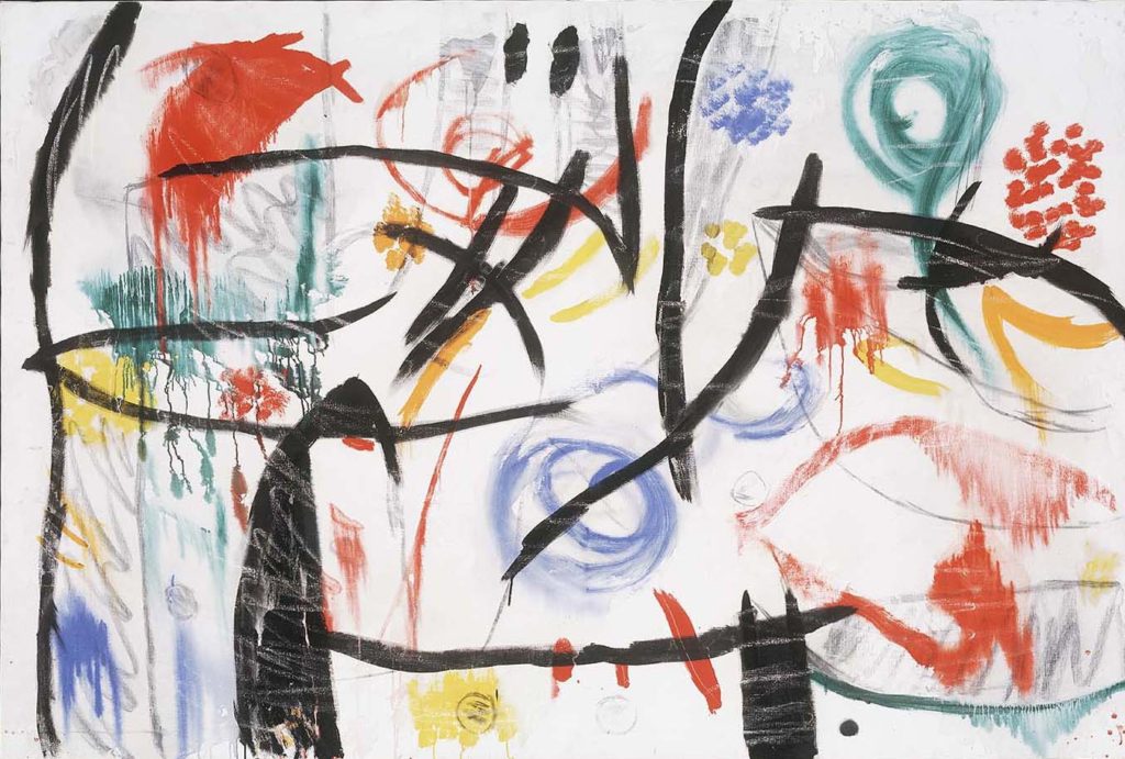 A rejuvenated revolutionary Miró set himself new challenges, opening up new unexpected paths. His interest focused on the creative process, with the resulting (never preconceived) images always emerging at the end. He let himself be guided by the materials’ own dictates and insinuations. He boldly experimented, discovering new techniques and taking their possibilities to the limits. Canvases were consumed with stains, splashes and drips, manifesting an energy that brought the whole surface to life. He became physically engaged in the process, often working on the floor, painting with his fingers and leaving traces of his presence on the final canvas.