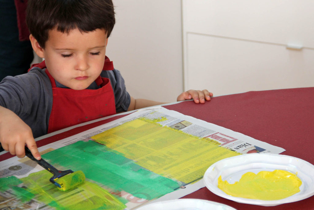 Avui hem descobert que una de les coses que més li agradava fer a Miró des de ben petit era observar el cel de nit amb un telescopi gegant que li havia regalat el seu pare. De fet, ens han explicat que un vespre es va adonar que el cel estava ple de puntets brillants i va pensar que aquests s’assemblaven molt a les pedretes que solia trobar en el bosc! Per això va decidir fer un llibre sobre pedres amb poders extraordinaris que de vegades es transformaven en estels fugaços per viatjar per tot l’univers! També hem parlat sobre com a l’artista li encantava experimentar i com, per aquest motiu, utilitzava sovint un mètode que li permetia crear múltiples universos plens dels seus colors preferits: el monotip.