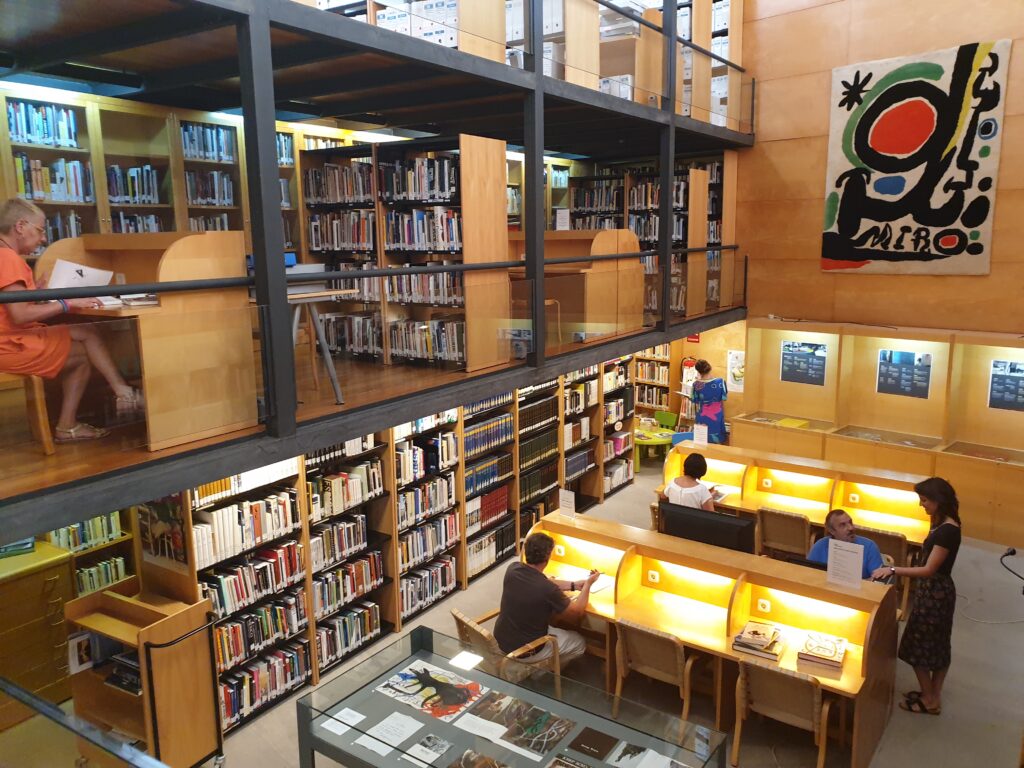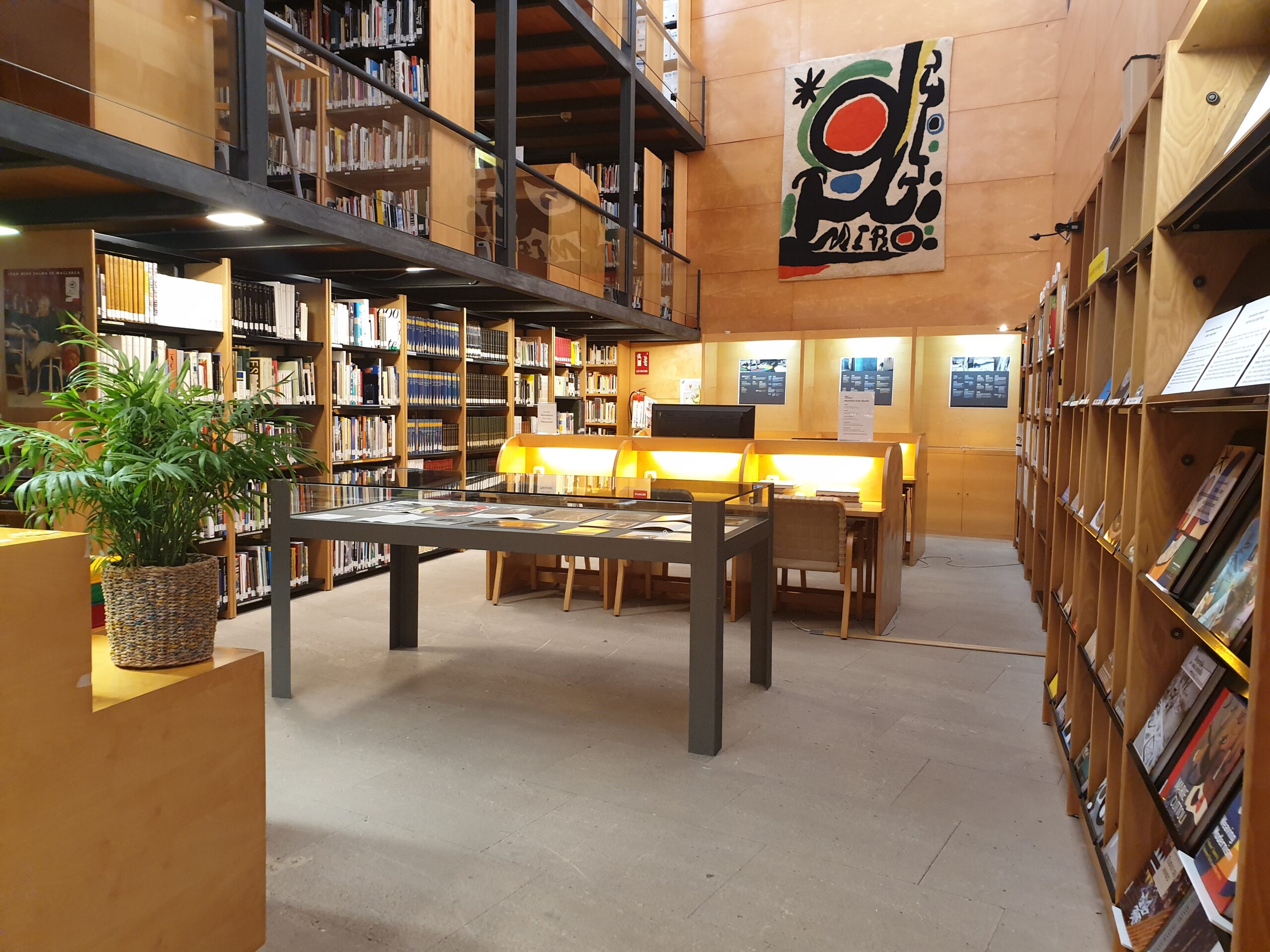 La biblioteca es troba a la Fundació Miró Mallorca, s’ubica a la planta -1 de l’Edifici Moneo.