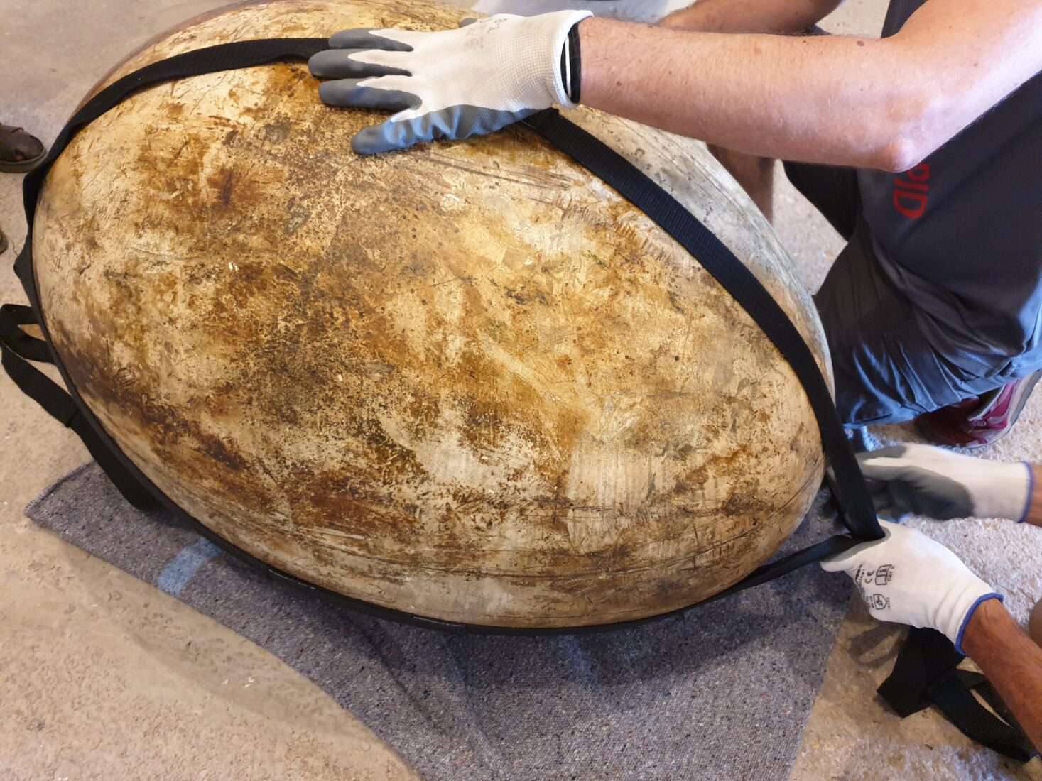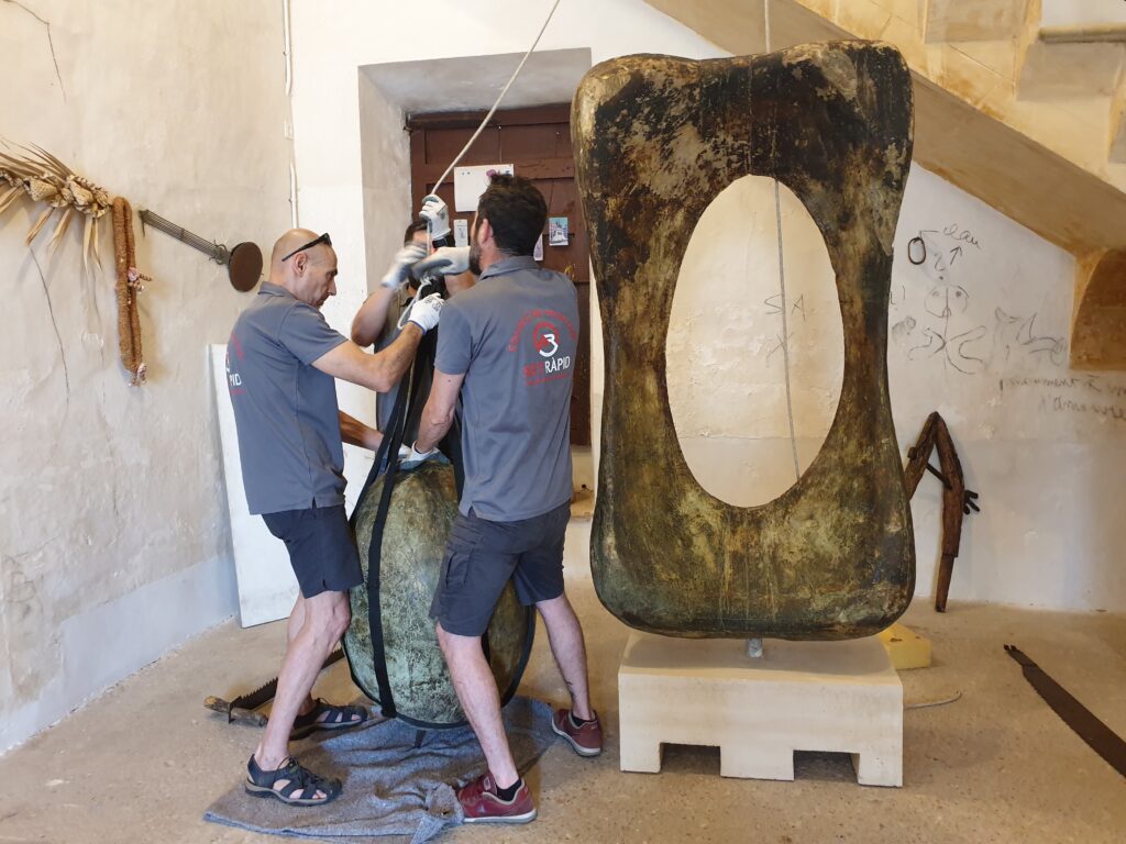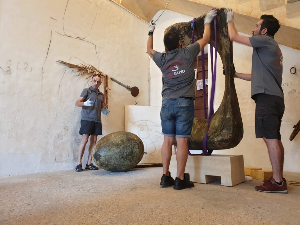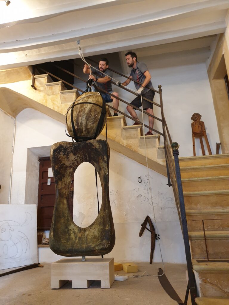 Precisament avui, els dos objectes que conformaren aquesta extraordinària escultura, un simple ou i una pastilla de sabó gastada de tant netejar-hi els pinzells de l’artista, ha pres vida novament a la Fundació, concretament a l’estudi de Son Boter, on Miró la va concebre. Els guixos que van permetre convertir-la en bronze a la Foneria italiana Fratelli Bonvicini, varen arribar a la Fundació fa uns mesos i avui, després d’una delicada operació d’ensemblatge, tornem a gaudir d’aquesta escultura devora el dibuix preparatori en forma de grafit que és la seva gènesis.