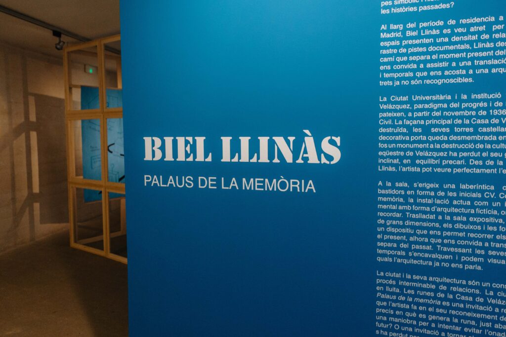 A la sala, s’erigeix una laberíntica construcció formada per bastidors en forma de les inicials CV. Com si fos un palau de la memòria, la instal·lació actua com un instrument mnemotècnic mental amb forma d’arquitectura fictícia, on dipositar allò que volem recordar. Traslladat a la sala expositiva, aquest palau de la memòria, amb les seves pintures de grans dimensions, els dibuixos i les fotografies d’arxiu, esdevé un dispositiu que ens permet recórrer els espais que perviuen en el present, alhora que ens convida a transitar la distància que ens separa del passat. Travessant les seves estances, les realitats temporals s’encavalquen i podem visualitzar els fets sobre els quals l’arquitectura ja no ens parla.