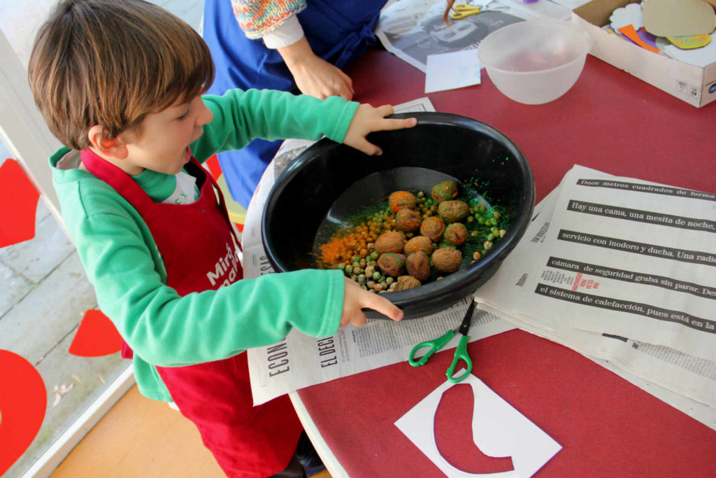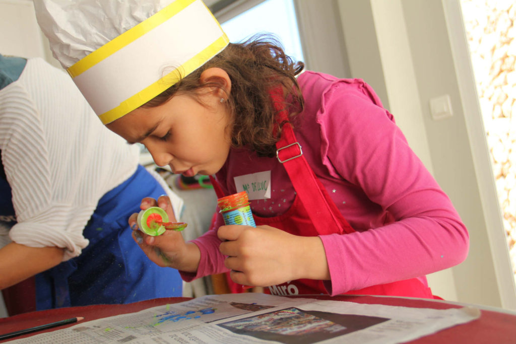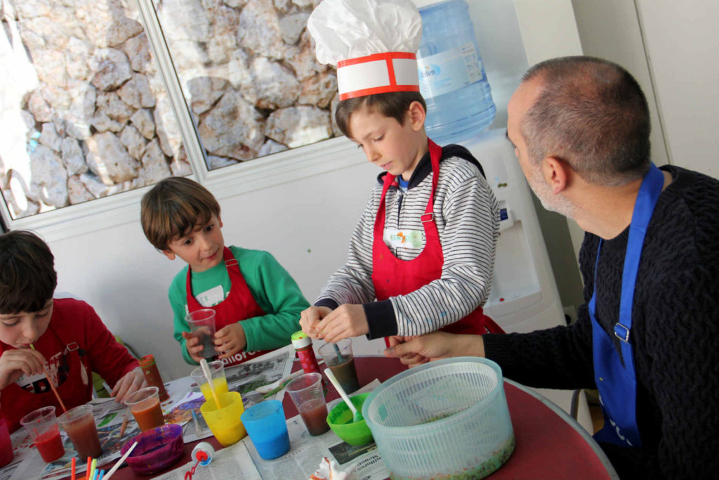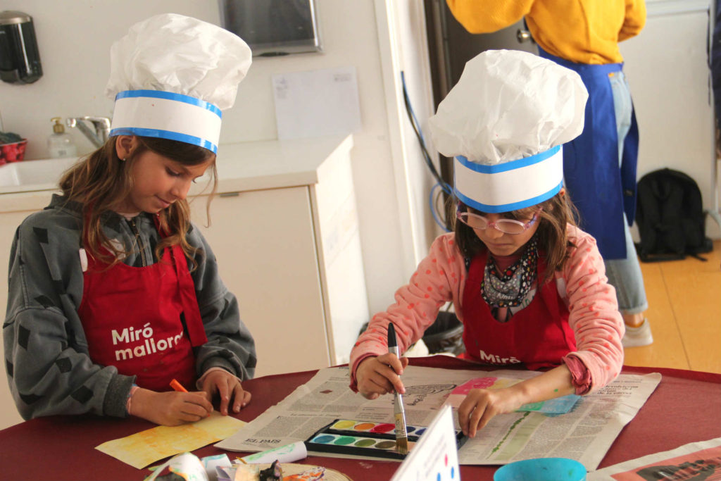 Plens d’inspiració hem realitzat un joc en grup per descobrir que en el taller faríem un homenatge a Pilar i Joan cuinant amb pintura! Un cop a l’espai educatiu, hem elaborat diferents plats amb tècniques originals i divertides per celebrar l’aniversari de noces de na Pilar i en Joan. Els resultats han estat uns menús d’allò més esbojarrats!