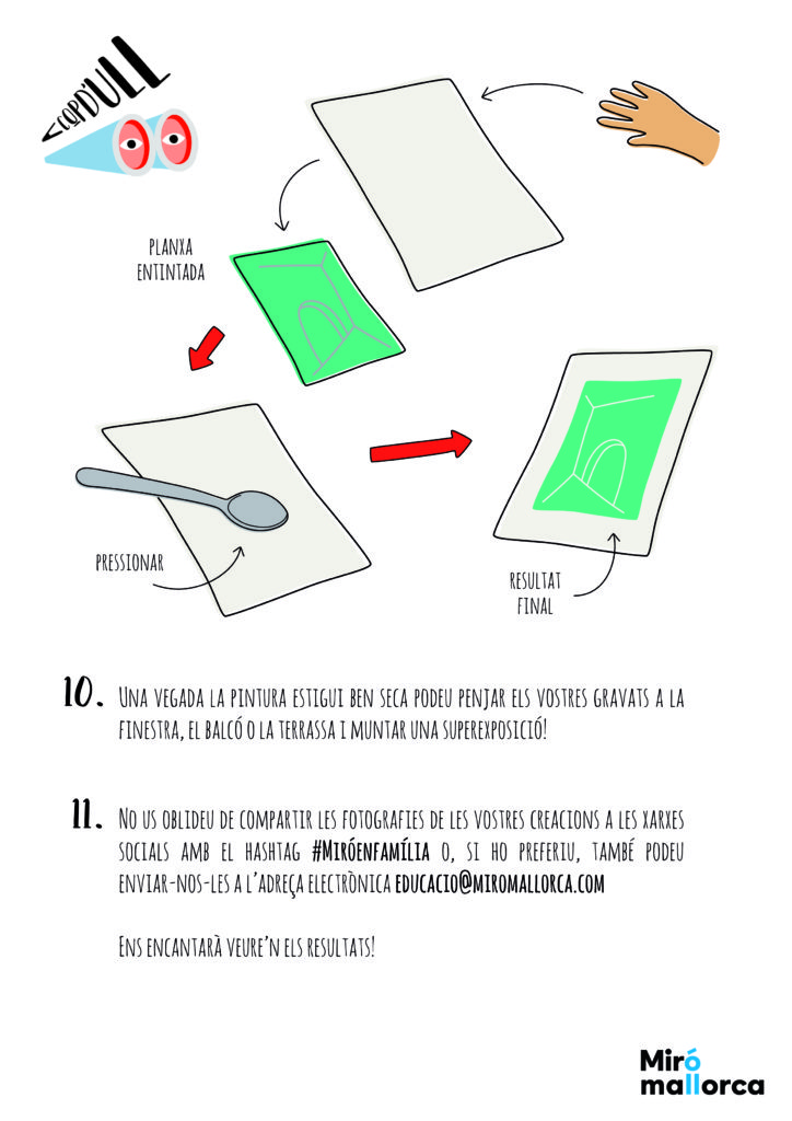 Pensau a compartir les fotografies de les vostres creacions a les xarxes socials amb el hashtag #Miróenfamília o, si ho preferiu, també podeu enviar-nos-les a l’adreça electrònica educacio@miromallorca.com